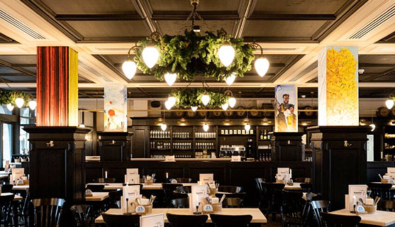 6 artists: Elvira Bach, Noah Becker, Rainer Fetting, Rebecca Raue, Salomé and Daniel Grüttner each paintig 120 x 190 cm, acrylic on canvas; Augustiner auf Bötzow, Berlin