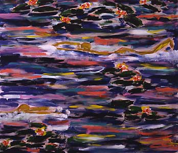 swimmers & water lilies through the years (1982–1990), 183 x 213 cm acrylic on canvas, signed, dated