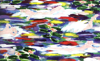 swimmers & water lilies through the years (1982–1990) – summer day, 140 x 230 cm gouache, signed, dated