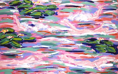 swimmers & water lilies through the years (1982–1990) – swimmers in cool light, 150 x 210 cm acrylic on canvas, signed, dated