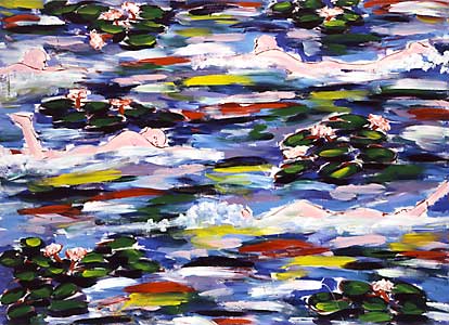 swimmers & water lilies through the years (1982–1990), 152 x 213 cm acrylic on canvas, signed, dated