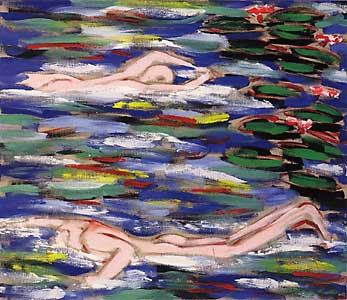 swimmers & water lilies through the years (1982–1990) – fall swimmers, 140 x 160 cm acrylic on canvas, signed, dated