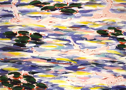 swimmers & water lilies through the years (1982–1990) – in bright light, 150 x 210 cm acrylic on canvas, signed, dated