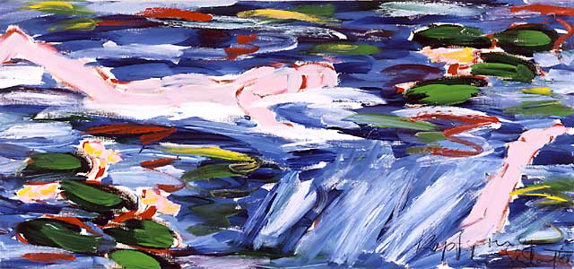 swimmers & water lilies through the years (1982–1990) – header, 70 x 150 cm acrylic on canvas, signed, dated