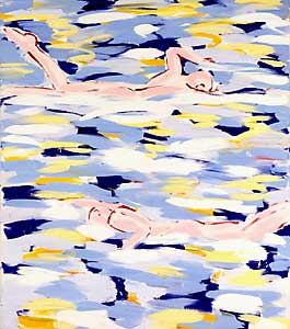 swimmers & water lilies through the years (1982–1990) – morning mood, 160 x 140 cm acrylic on canvas, signed, dated
