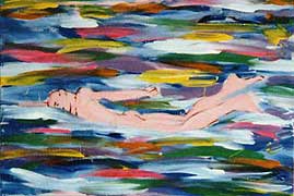 swimmers & water lilies through the years (1982–1990) – swimmer, 60 x 90 cm acrylic on canvas, signed, dated
