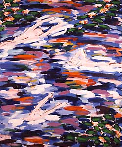 swimmers & water lilies through the years (1982–1990) – summer day, 240 x 200 cm acrylic on canvas, signed, dated