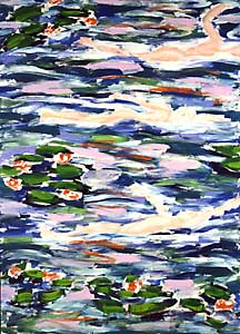 swimmers & water lilies through the years (1982–1990), 213 x 152 cm acrylic on canvas, signed, dated