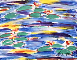 swimmers & water lilies through the years (1999–2006) – rubber waterlilies, each painting 70 x 90 cm rubber on canvas, signed, dated