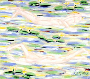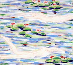 swimmers & water lilies through the years (1999–2006), each painting 140 x 160 cm acrylic on canvas, signed, dated