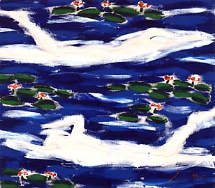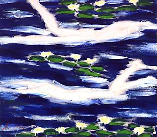 swimmers & water lilies through the years (1999–2006), each painting 140 x 160 cm acrylic on canvas, signed, dated