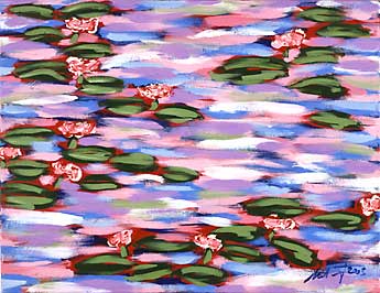 swimmers & water lilies through the years (1999–2006), 100 x 130 cm acrylic on canvas, signed, dated