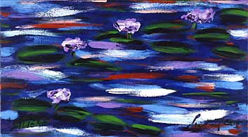 swimmers & water lilies through the years (1999–2006), 50 x 90 cm acrylic on canvas, signed, dated