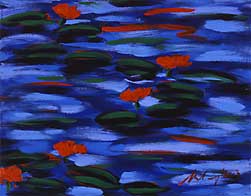 red waterlilies, 90 x 90 cm