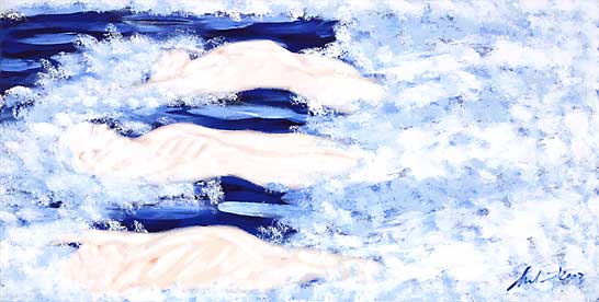 swimmers & water lilies through the years (1999–2006) – swimmers’ start, 100 x 200 cm acrylic on canvas, signed, dated