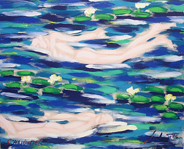 swimmers & water lilies through the years (1999–2006) – swimmers, 130 x 160 cm acrylic on canvas, signed, dated