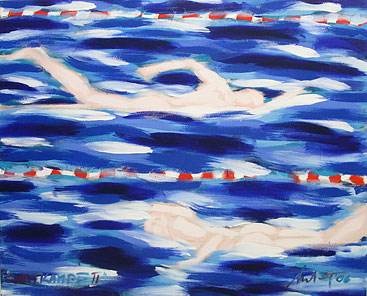 swimmers & water lilies through the years (1999–2006) – competition II, 130 x 160 cm acrylic on canvas, signed, dated