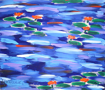 swimmers & water lilies through the years (1999–2006), 120 x 140 cmbr /> acrylic on canvas, signed, dated