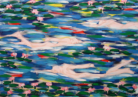 swimmers & water lilies (2007) – water lily pond, 150 x 210 cm acrylic on canvas, signed, dated