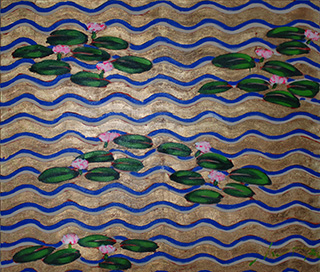 water lilies – gold, silver, copper (2020), 120 x 140 cm