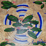 water lilies – gold, silver, copper (2020), 50 x 50 cm acrylic & metal leaf on canvas, signed, dated